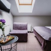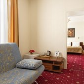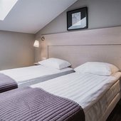 Апартаменты состоят из 27 комнат категории "эконом", 64 стандартных небольших комнат, 12 улучшенных комнат и 2 номеров повышенной комфортности категории люкс. Стандартные комнаты - двухместные, оснащены одной широкой или двумя односпальными кроватями. Во всех комнатах имеется ванная комната с душем или ванной, фен, телевизор, телефон и сейф. Комнаты люкс оснащены сауной.