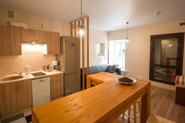 В отеле имеется полностью оборудованный кухонный гарнитур, и уютный гостиничный уголок, в котором можно отдохнуть и пообедать.