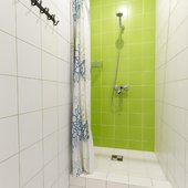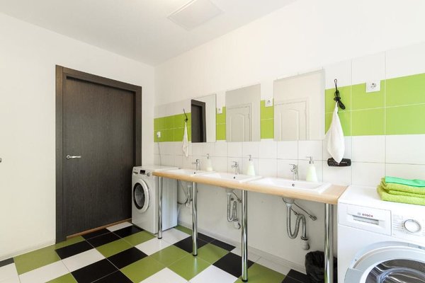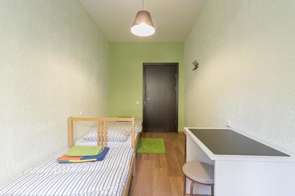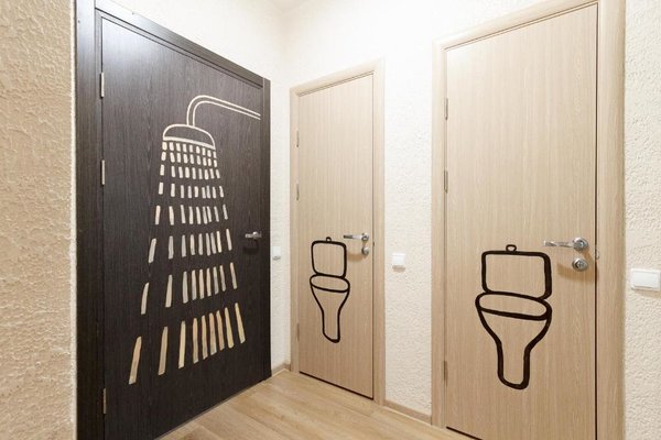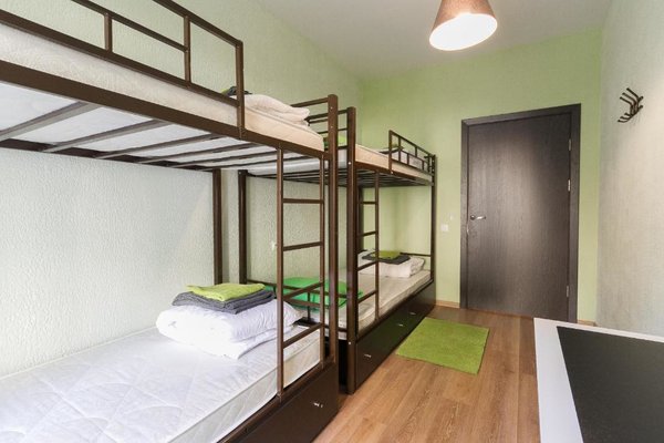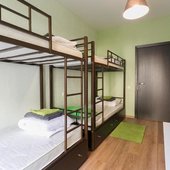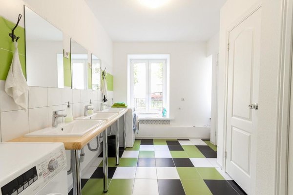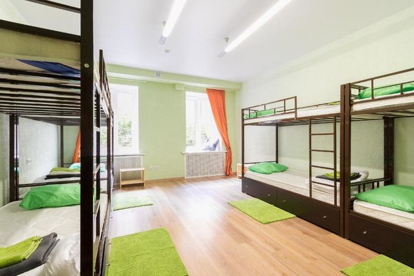 Есть мужские и женские, общие и отдельные номера представленные в стиле минимализм с приятными зелеными оттенками в деталях. Удобства располагаются на этаже, в самостоятельных — в номере.