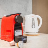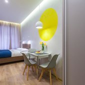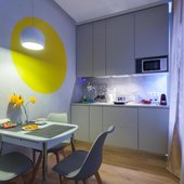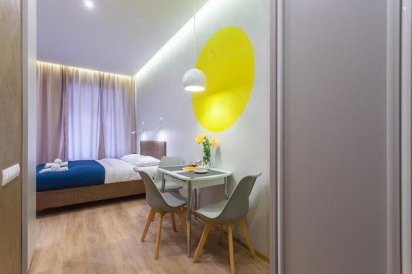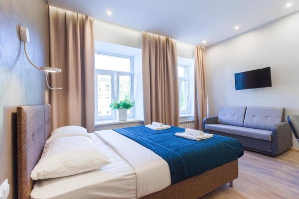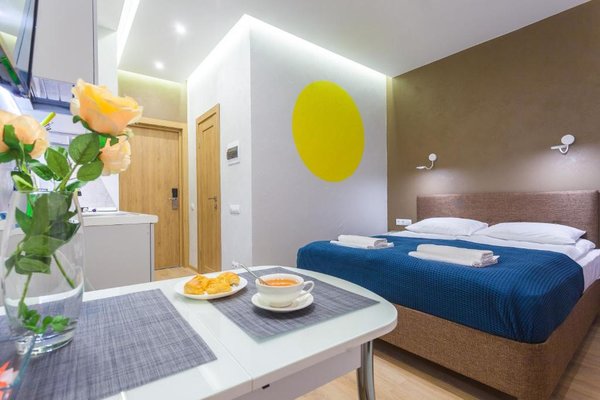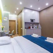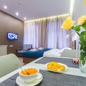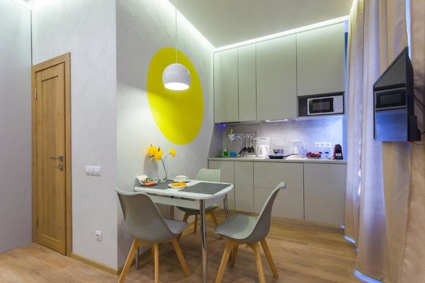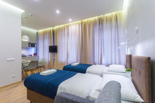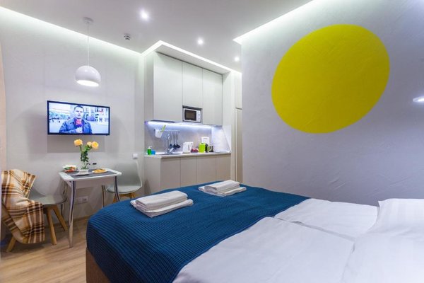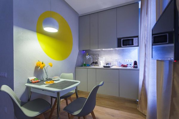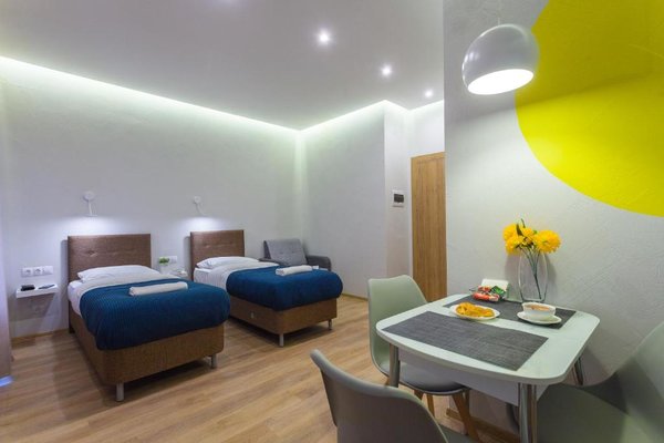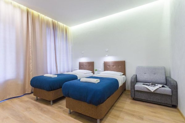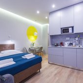 Номерной фонд представлен стильными апартаментами, в которых выполнен дизайнерский ремонт. Постояльцам доступны удобные спальные места, большой телевизор, собственная ванная комната с душевой кабиной, сейф и стиральная машина. Утром можно насладиться чашкой ароматного кофе, приготовленного с помощью капсульной кофемашины.