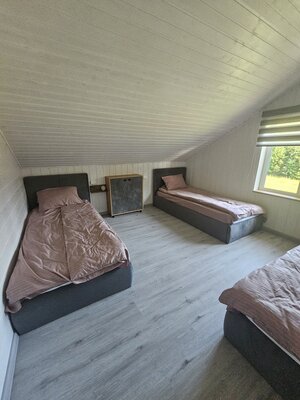 Для семей с детьми на участке предусмотрены детская площадка, уличный батут и игровой городок для малышей. Закрытая парковка рассчитана на 12 автомобилей. Проживание с животными возможно по предварительной договорённости.