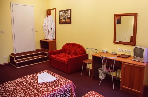 Просторные номера категорий «Стандарт» и «Комфорт» оборудованы всем необходимым, в том числе сплит-системой, интернетом, сейфом, отдельными душевыми кабинами.