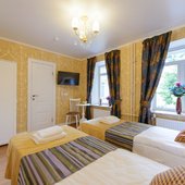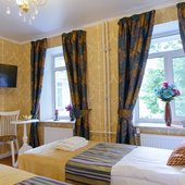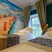 Номера поделены на несколько категорий, каждый из них имеет индивидуальное оформление. Разместиться предложено на одной двуспальной или двух односпальных кроватях.
