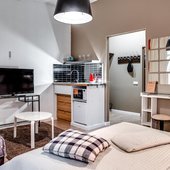 Каждый номер выполнен в теплой цветовой гамме и с использованием дизайнерского интерьера. В категориях имеется все необходимое для комфортного проживания, а именно телевизор с плоским экраном и кабельным телевидением, беспроводным доступом к сети Wi-Fi, собственная ванная комната. Некоторые категории включают в себя отдельную кухню.