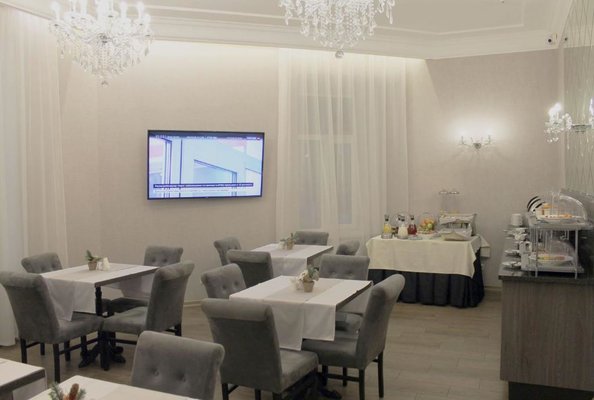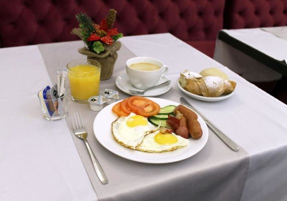 Питание организовано в ресторане отеля. Здесь подают вкусные блюда и напитки по меню. Также возможна организация банкета.