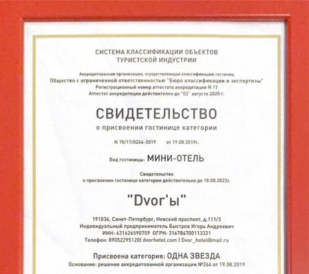 Отель «Dvor'ы» располагается в Санкт-Петербурге. Здесь представлен широкий спектр услуг. В числе удобств бесплатный высокоскоростной интернет, общественная парковка для транспорта, экскурсионное обслуживание. Дополнительно оплачивается трансфер, услуги химчистки и прачечной.