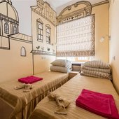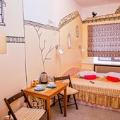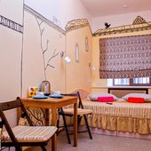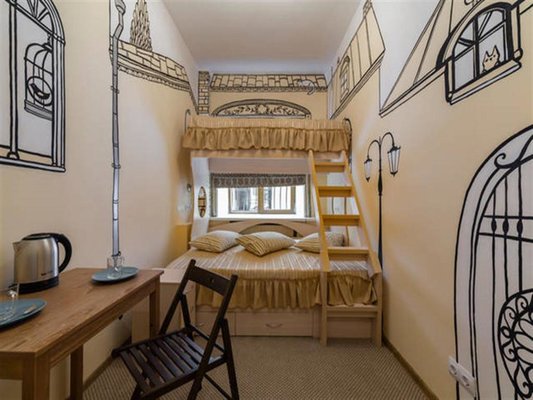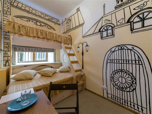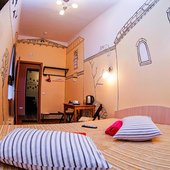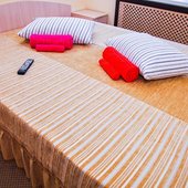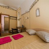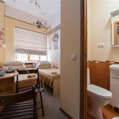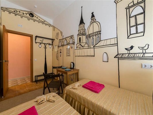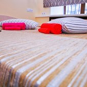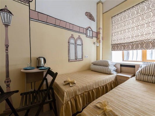 Для размещения можно выбрать двухместные или трехместные номера. Все категории оформлены в едином стиле, укомплектованы качественной мебелью и современной техникой. В некоторых вариантах размещения есть собственная ванная комната.