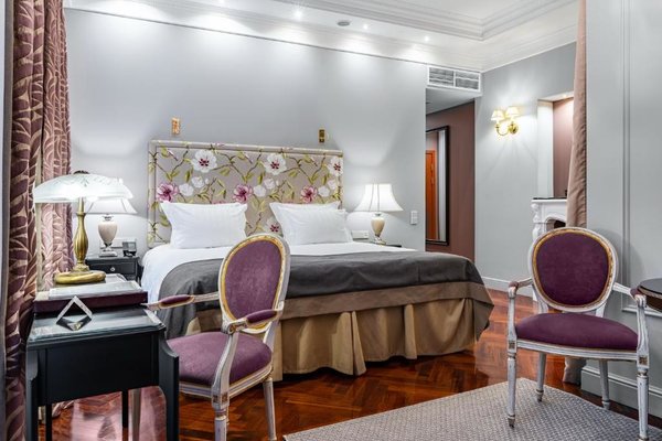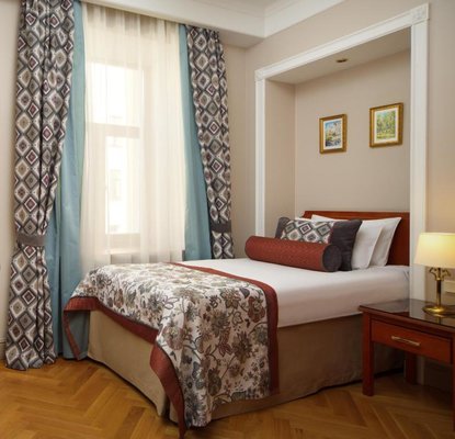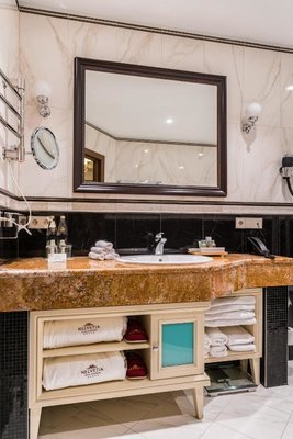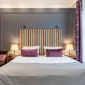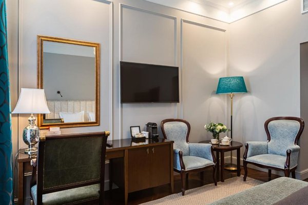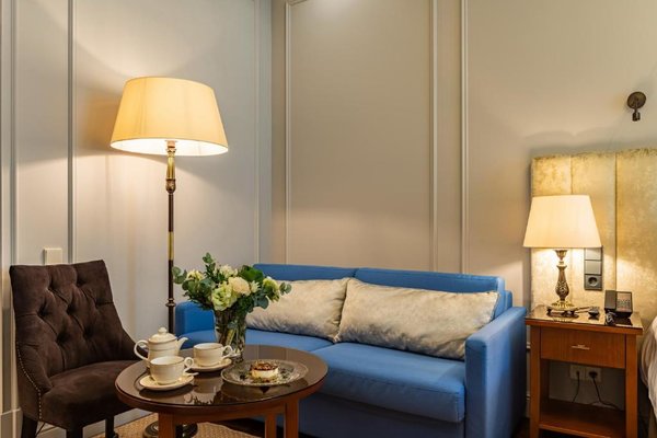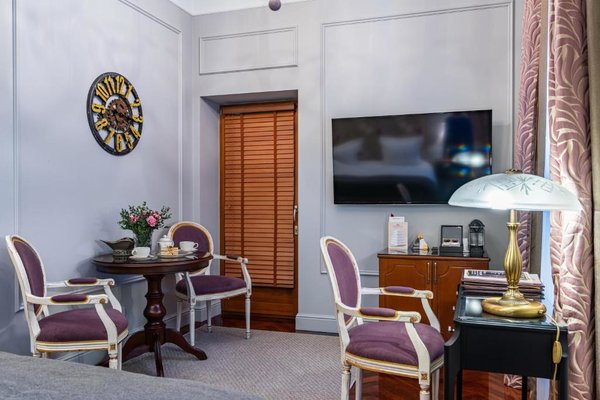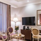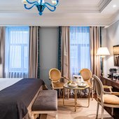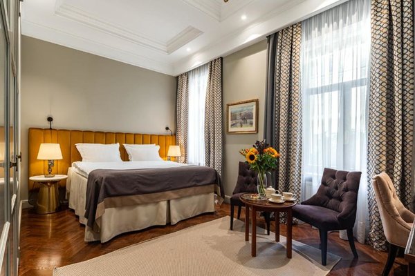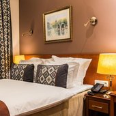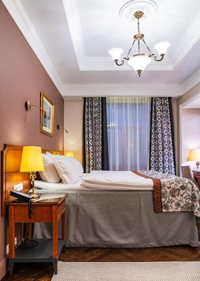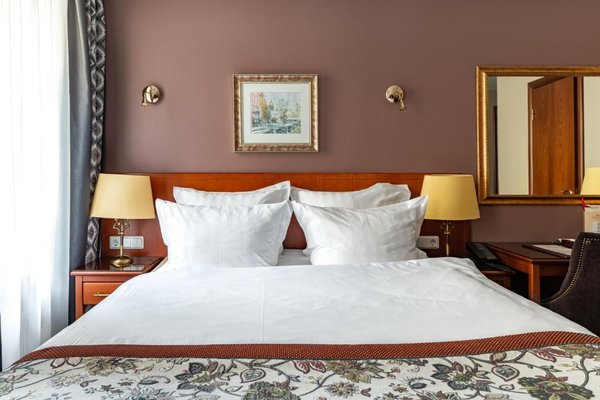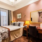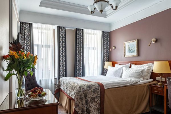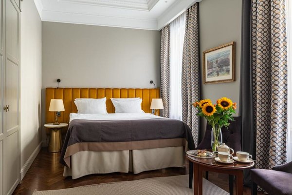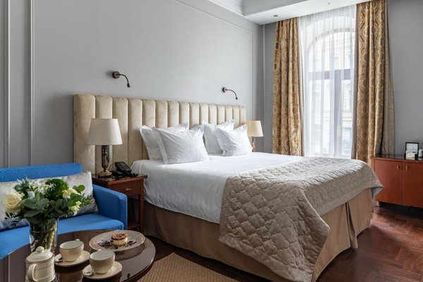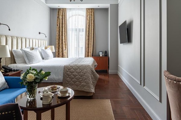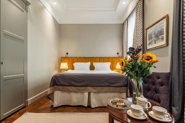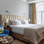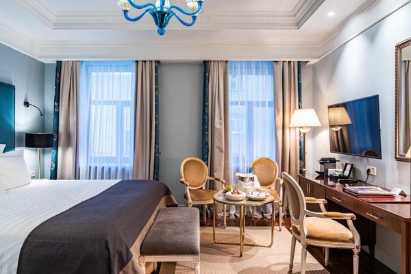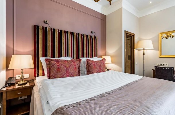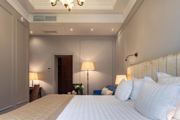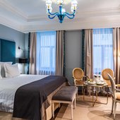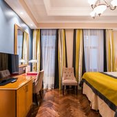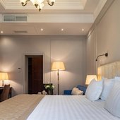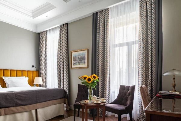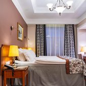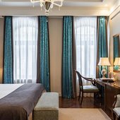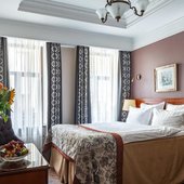 В здании элегантного особняка 75 стильных номеров. Приятное и уютное пребывание в отеле обеспечено благодаря современному техническому оборудованию и современной мебели. Так в число удобств входят: телевизор со спутниковыми каналами, рабочий стол, гладильная доска, чайник. чайная пара, мини-бар, кондиционер. Ванная комната укомплектована мягким халатом, тапочками, феном, набором полотенец и косметических средств.