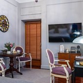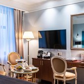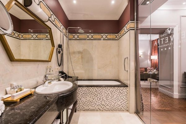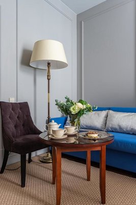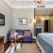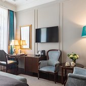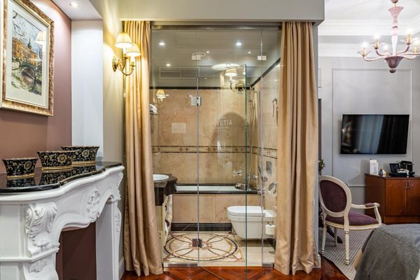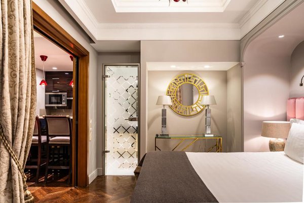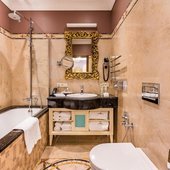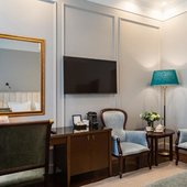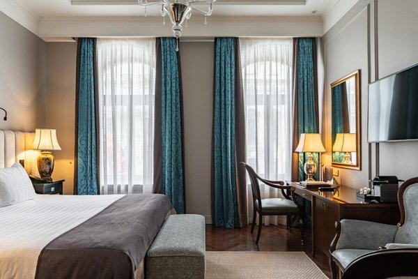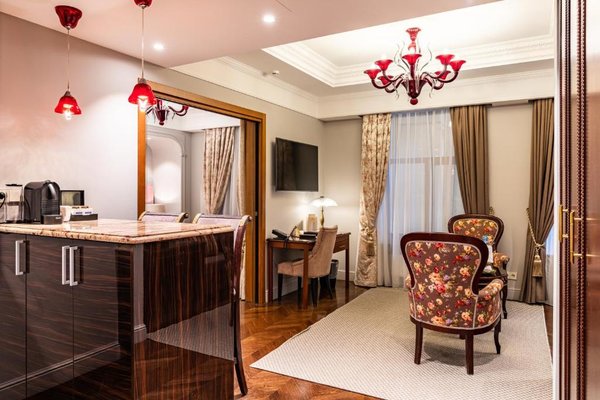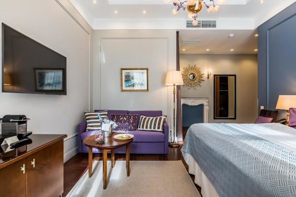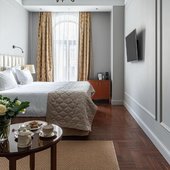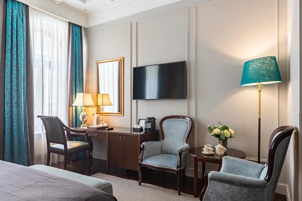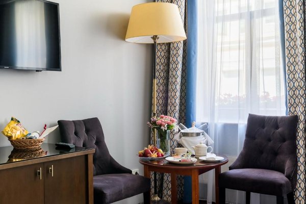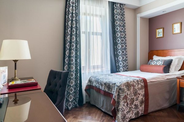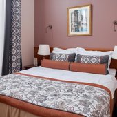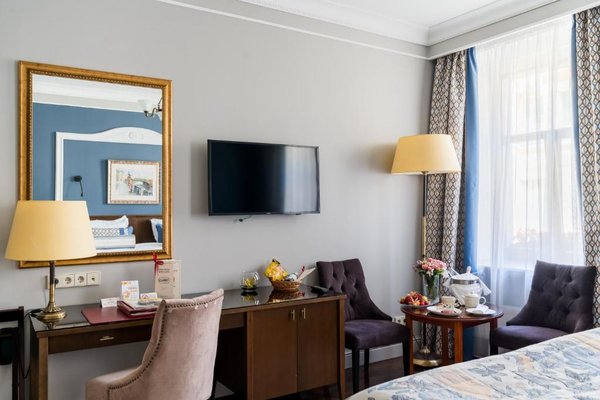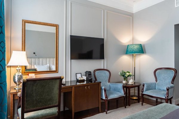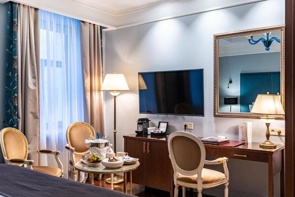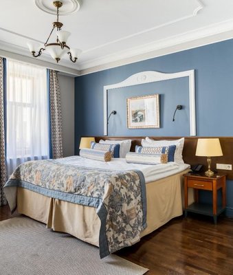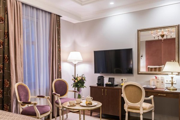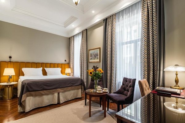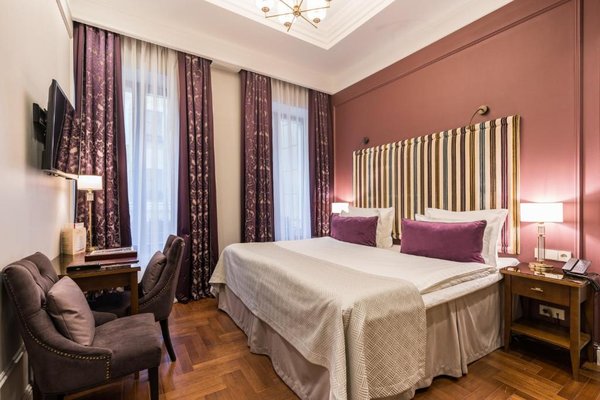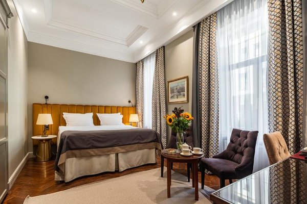 В здании элегантного особняка 75 стильных номеров. Приятное и уютное пребывание в отеле обеспечено благодаря современному техническому оборудованию и современной мебели. Так в число удобств входят: телевизор со спутниковыми каналами, рабочий стол, гладильная доска, чайник. чайная пара, мини-бар, кондиционер. Ванная комната укомплектована мягким халатом, тапочками, феном, набором полотенец и косметических средств.