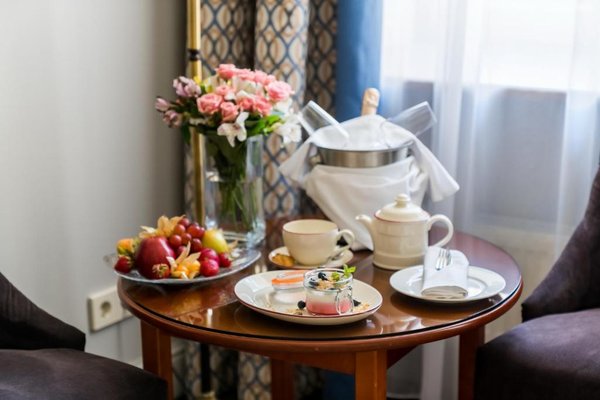 На территории работают два заведения: ресторан «Мариус» и кафе «Кларет», которые специализируются на европейской кухне. В ресторане подают завтрак в формате «шведский стол».