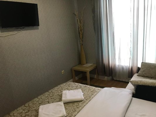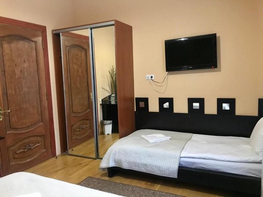 Просторные и светлые номера укомплектованы телевизором, холодильником и удобной мебелью. Ванные комнаты предоставляются как собственные, так и общие.