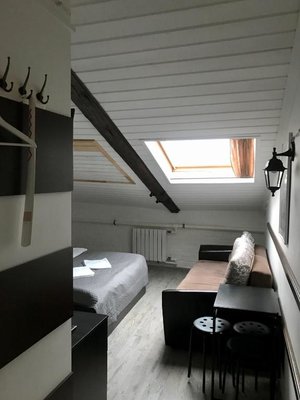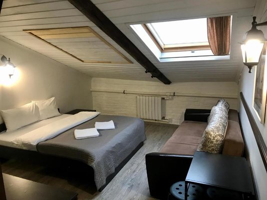 Отель находится в центре столице на пятом этаже жилого здания 19 века.