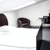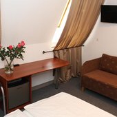Категории оформлены в классическом стиле и включают в себя удобные кровати с ортопедическими матрасами, плазменный телевизор, собственную ванную комнату с халатом и тапочками. Некоторые номера располагают живописным видом на город или реку. На территории работает Wi-Fi.