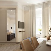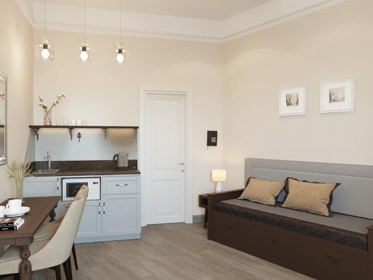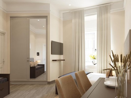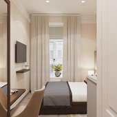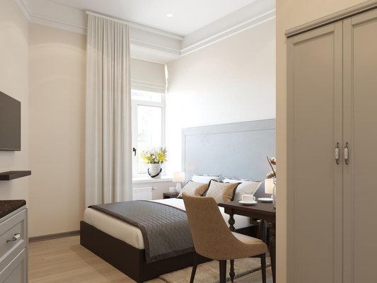 Номерной фонд имеет различные категории для уютного размещения от двух до четырех человек. Интерьер помещений выполнен в современном стиле в светлых тонах. В номерах есть качественная и комфортная мебель, удобные спальные места, холодильник и телевизор с высокой четкостью изображения. в личном распоряжении жильцов туалетная комната с ванной, гигиеническими принадлежностями и набором чистых полотенец.