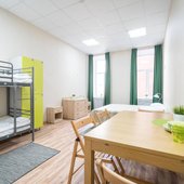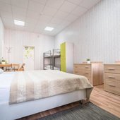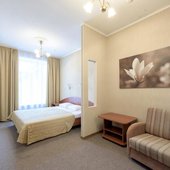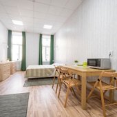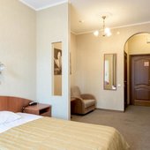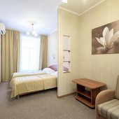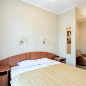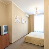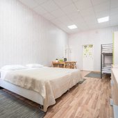 Комплекс предлагает для проживания 3 категории. Также на территории расположен хостел. В числе удобств: собственная ванная комната. Для оформления выбрана нейтральная цветовая гамма.