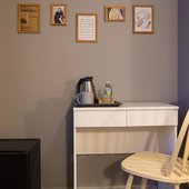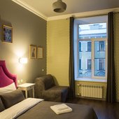 Интерьер выполнен в современном и индивидуальном стиле. Комфортабельная мебель и собственная ванная комната делают проживание здесь удобным. Категории номеров представлены от стандартов, до De Luxe.