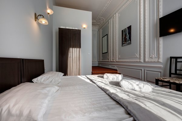 Комфортабельные номера оборудованы системой вентиляции, собственной ванной комнатой, а также всем необходимым для проживания. Из окон открывается живописный вид на Фурштатскую улицу или во двор.