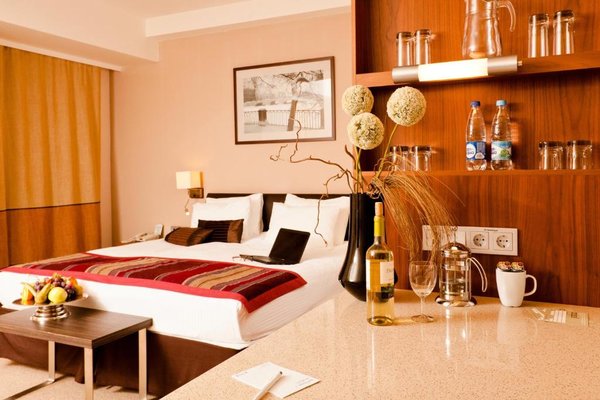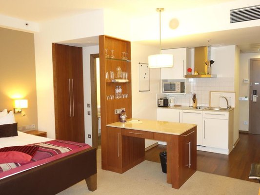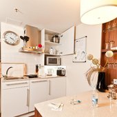 Для размещения предоставлены номера-люксы с одной и двумя спальными или студии для двоих, с оборудованными кухнями, оснащенные ТВ-панелью.