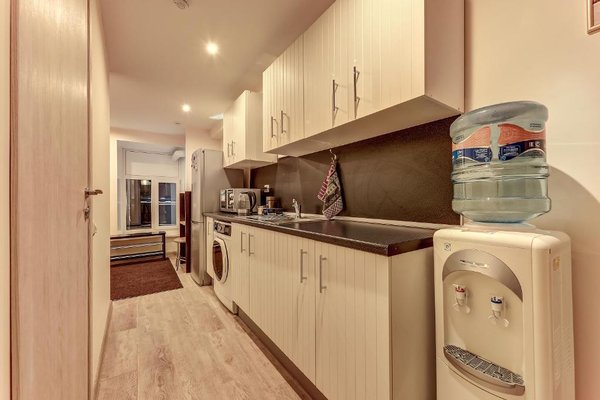 На общей кухне постояльцы готовят себе самостоятельно. В пешей доступности есть несколько продуктовых магазинов, а также кафе и столовые.