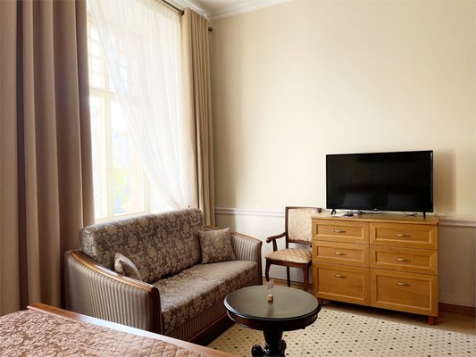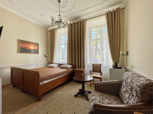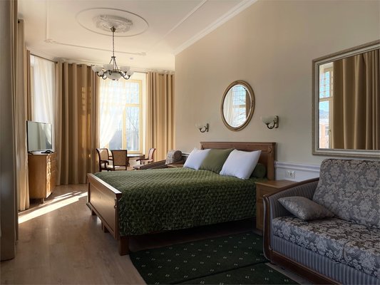 Отель предлагает роскошные номера различной вместимости, включая те, в которых есть специальные гидромассажные ванны и бочки-сауны. Благодаря этому, гости могут комбинировать отдых с оздоровлением. «Усадьба адмирала Лазорева» прекрасно подойдёт для семейного отдыха, проведения мероприятий, уединения или корпоративных поездок.