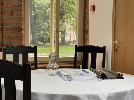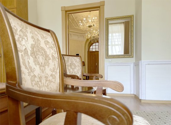 Комната переговоров «Резиденция» располагается в отдельно стоящей парковой резиденции усадьбы.