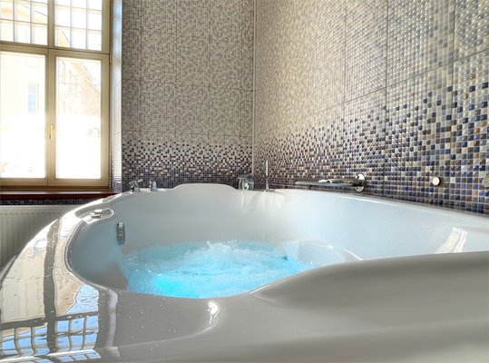 На данный момент доступна в апартаменте с гидромассажной ванной.