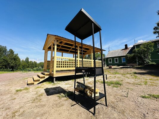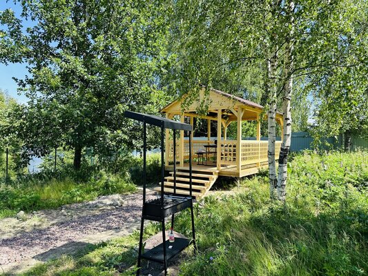 Беседка вместимостью до 20 человек. Стоимость: 5000 ₽ / 2 часа. Каждый последующий час — 1500 ₽.