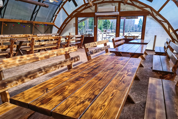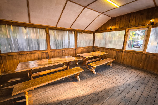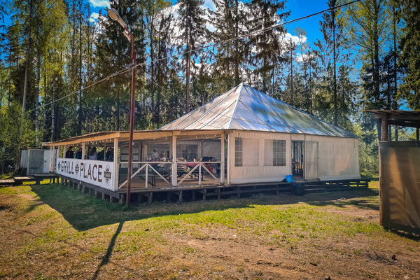 Большой корпоративный "Шатёр" вместимостью до 140 человек. Просторный зал, открытая терраса.