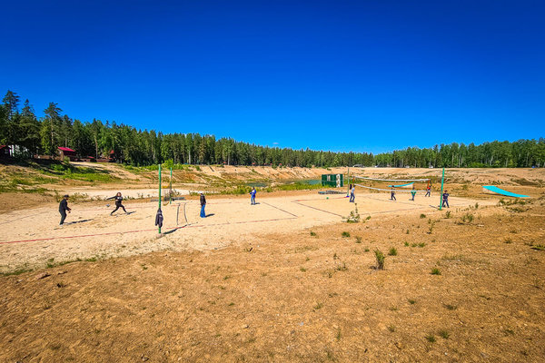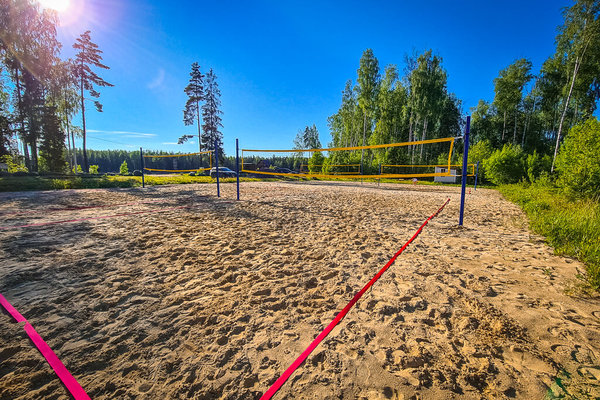 На базе шесть оборудованных площадок для пляжного волейбола.