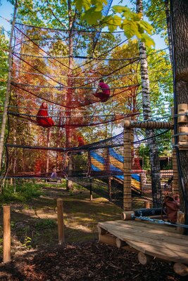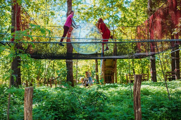 Любимые детьми всех возрастов сеточные лабиринты натянуты между деревьями. Зимой закрыты зеленые спуски в целях безопасности.