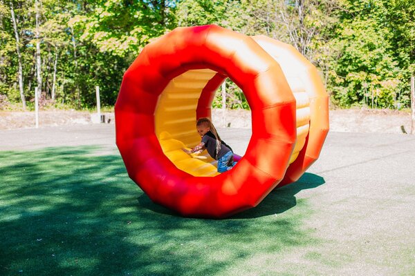 Для самых озорных «белок в колесе». Поле с большими катушками-роллерами, в которых можно крутиться, кувыркаться и кататься.