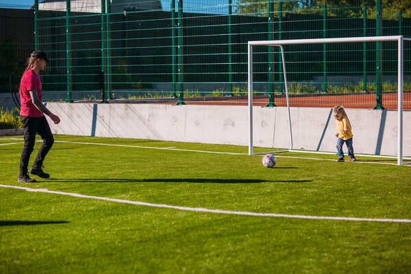 Не только для детей, но и для взрослых теннисный корт с комфортными раздевалками. Мини-турниры проводятся по записи.