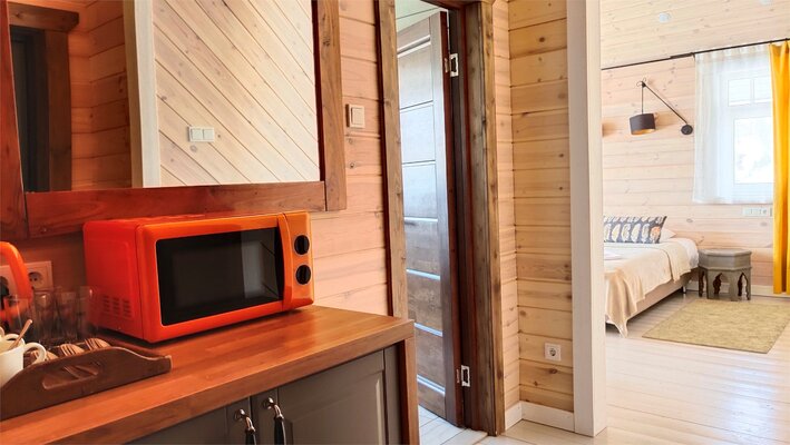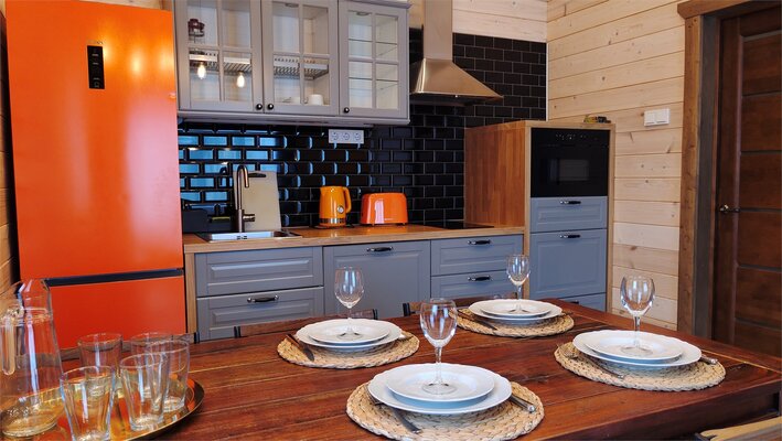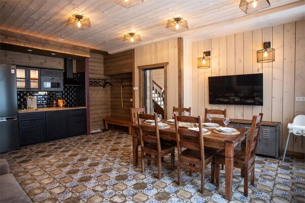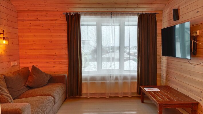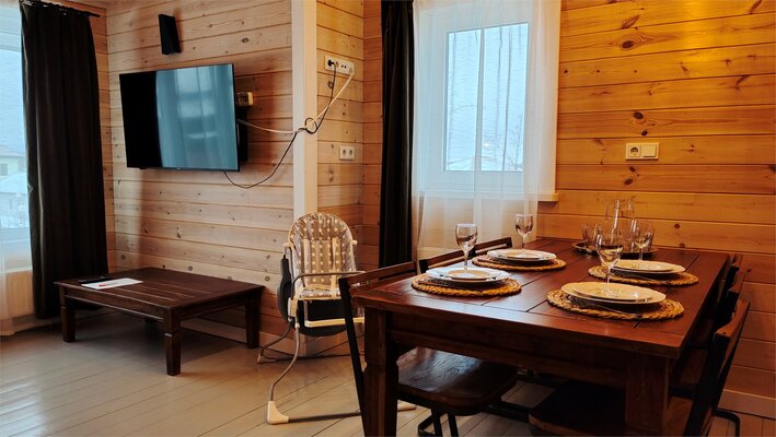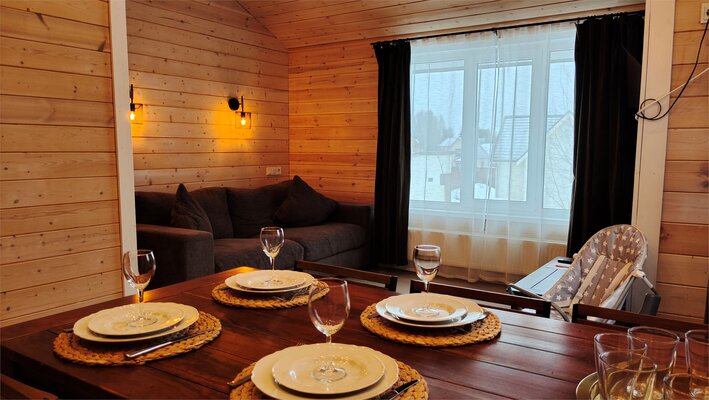 Комфортный домик со звуковым и световым оборудованием, просторной террасой и мангальной зоной отлично подойдет для большой компании в любое время года.