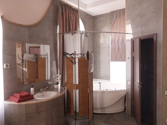 Погрузитесь в мир безмятежности с нашими уютными номерами, оснащенными джакузи для блаженного расслабления. Насладитесь теплой атмосферой сауны и освежающими водами бассейна, чтобы стряхнуть напряжение после насыщенного дня.