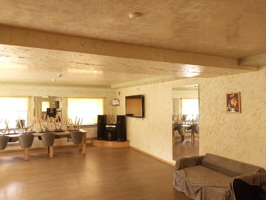 Банкетный зал с караоке и посудой для праздника на 25 человек.