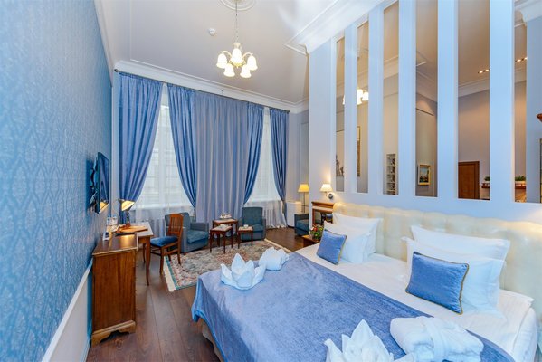Гостиница предлагает гостям 73 номера, в том числе категории: «Standart», «Delux», «Lux», «Studio», «Apartament», «Family Room», «Triple room», «City view». Все номера отличаются по площади и интерьеру, имеют неповторимый авторский дизайн. Прекрасный вид из окон гостиницы придаст сказочно красивую атмосферу романтики, что поможет окунуться и помечтать о будущих светлых свершениях. Оснащение номеров располагает к комфортному пребыванию: удобная мебель, LCD-телевизор, мини-холодильник, телефон и беспроводной доступ в интернет.