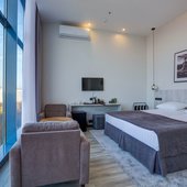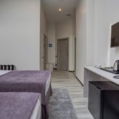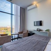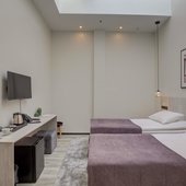К размещению гостей предлагаются 27 номеров категории Standart, Superior и Suit. Дизайн отеля выполнен в Эко стиле, использовавшиеся материалы и формы создают атмосферу комфорта и единения с природой. Для гостей отеля с 10.00 утра открывается вся инфраструктура ТРЦ «Питерлэнд» – самый большой и посещаемый Аквапарк Санкт-Петербурга «Питерлэнд», магазины самых популярных брендов, рестораны, кафе, кинотеатры, детские игровые комнаты, скалодром, Аэротруба и множество других интересных развлечений.