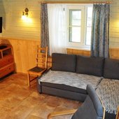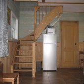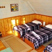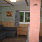 На территории, в непосредственной близости от озера с пирсом, расположена уютная баня. Жарко топится дровами, березовые и дубовые веники в наличии. Парилка рассчитана на 4 человека. Помывочная с обливным устройством холодной водой, купель с озерной водой, туалет , комната отдыха с DVD.