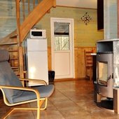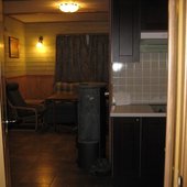 В бане комфортно могут находиться 5-6 человек. С уличной веранды можно окунуться в купель с холодной озерной водой, расположенной тут же у входа на веранду или пробежаться по тропинке 20 метров и нырнуть в озеро.