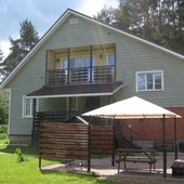 Беседка до 16 человек: На самом берегу, с видом на озеро, удачно вписана в окружающий ландшафт. В беседке сделано утепление, стеклопакеты, мебель для приготовления блюд, немецкая дровяная печь-духовка, два больших стола с лавками и стульями.