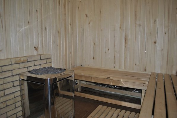 Отдельное здание сауны расположено в двадцати метрах от входа в санаторий.