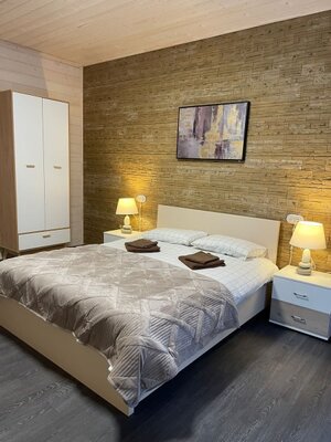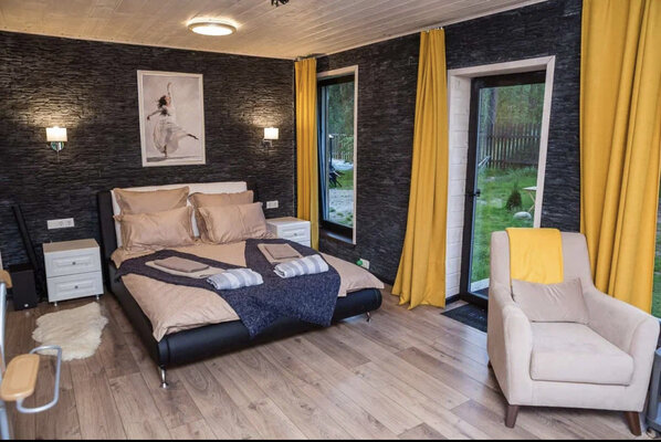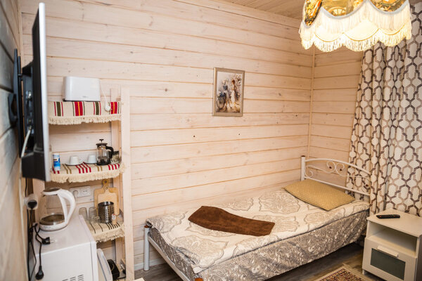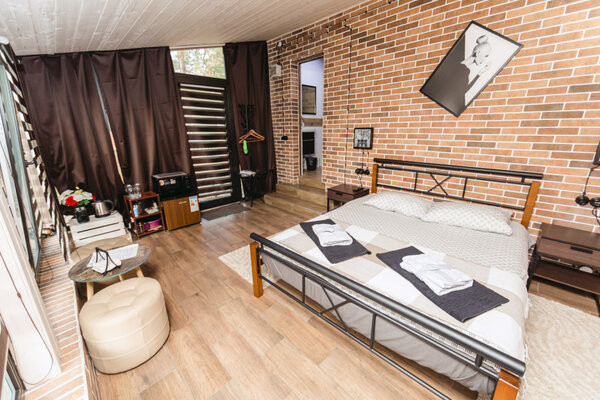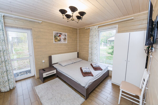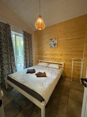 К услугам гостей — комфортабельные номера и коттеджи вместимостью от 2 до 8 человек, включая апартаменты, семейные полулюксы и отдельные домики. Все варианты оснащены удобной мебелью, полноценными спальными местами, шкафами, рабочими зонами, телевизором, холодильником и чайной станцией. В каждом санузле предусмотрен душ, полотенца и базовые туалетные принадлежности. Коттеджи дополнительно располагают оборудованными кухонными зонами и индивидуальными площадками для барбекю с мангалами.