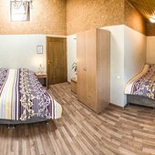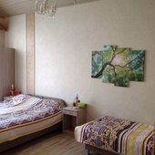 Ностиница находится недалеко от «Мега ИКЕА» (Парнас) в деревне Корабсельки. К вашим услугам шесть комфортабельных номеров – по два на этаж ,большая гостиная ,конференц зал на 15 человек ,обеденный зал на застекленной террасе второго этажа и современная кухня со всем оборудованием для гостей .