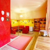 Площадь 80кв м, вместимость при банкетной рассадке 40 человек.