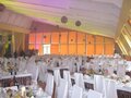 Площадь 450кв м, вместимость при банкетной рассадке 250 человек.