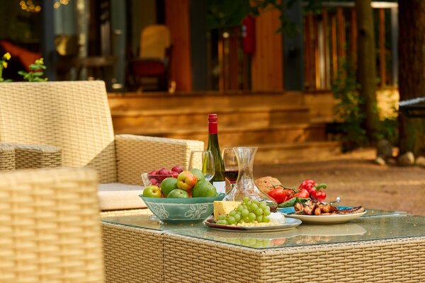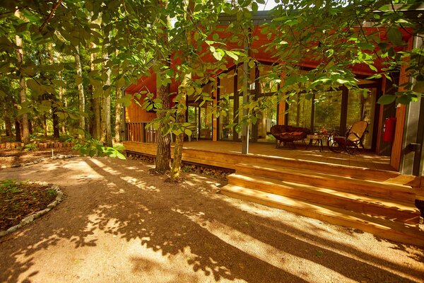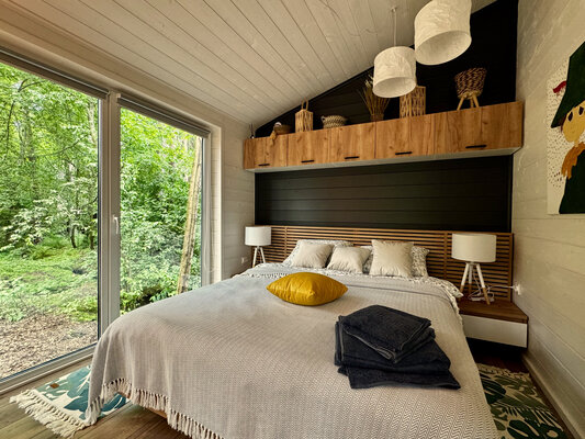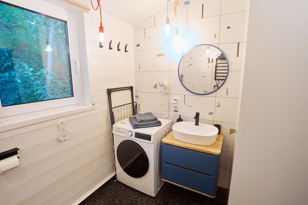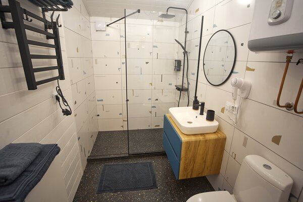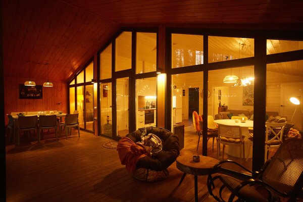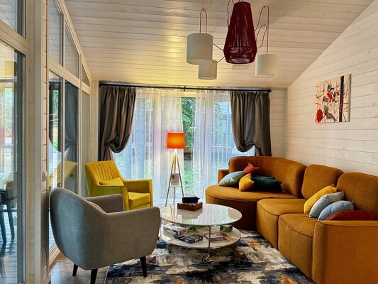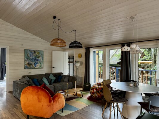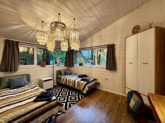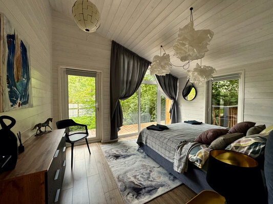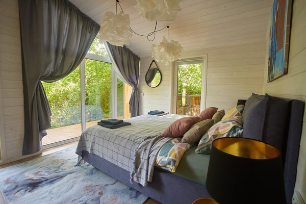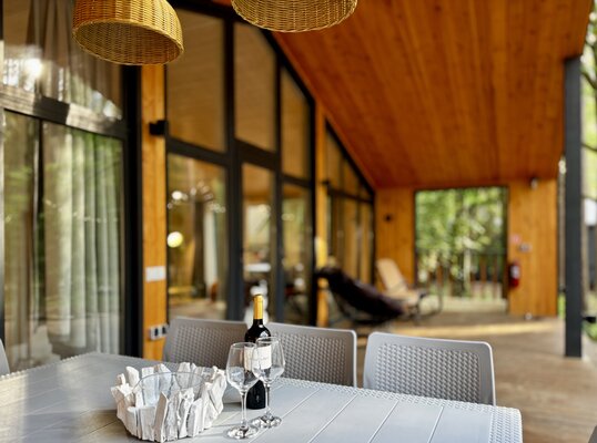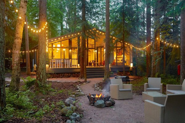 Светлые и уютные дома оснащены большой террасой и панорамными окнами, предлагая всё необходимое для комфортного отдыха. Каждый дом включает кухню с винным баром и полной бытовой техникой, просторную гостиную с Bluetooth-колонкой и диваном, современную ванную комнату с душевой и стиральной машиной, а также теплые полы во всех комнатах.