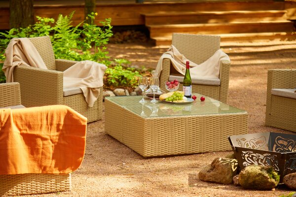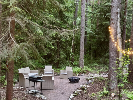 На приусадебной территории каждого барнхауса есть мангал, удобная уличная мебель и место для костра, а также парковка для двух автомобилей. Здесь вас ждут неспешные прогулки к заливу, уютные вечера у костра и утренний кофе на террасе под шёпот сосен.