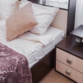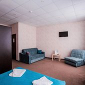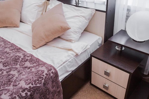 В номерах допускается проживание с питомцами. Оформлены они в классическом стиле и спокойных бежевых оттенках. В индивидуальной ванной комнате предоставляются одноразовые туалетно-косметические принадлежности.