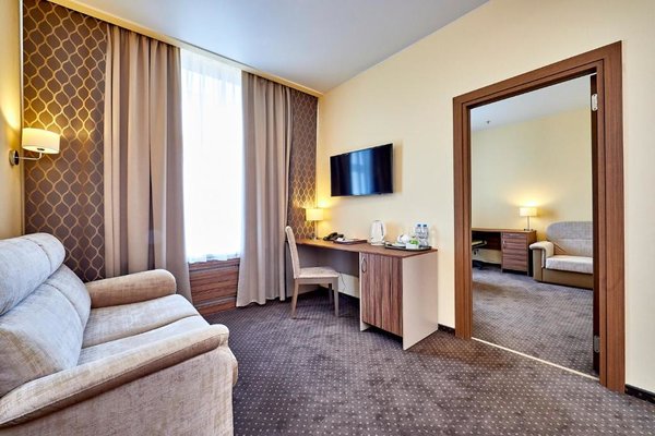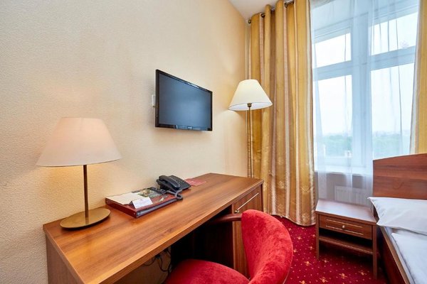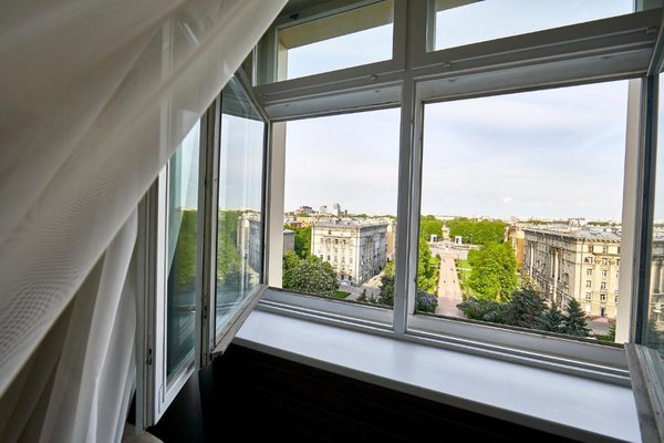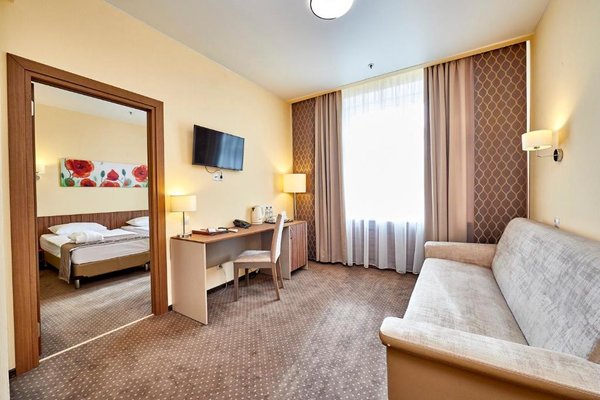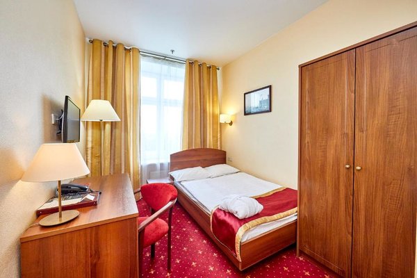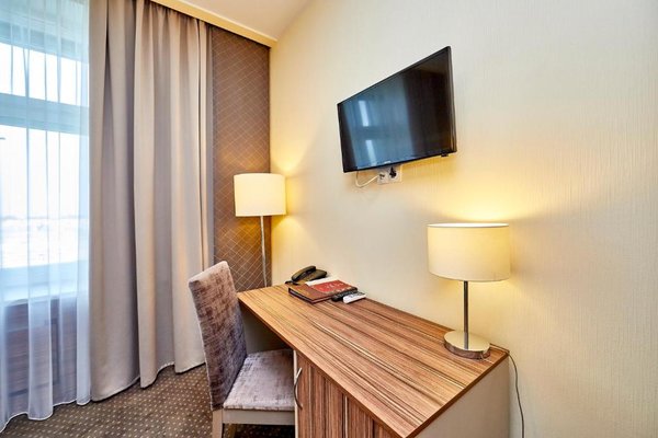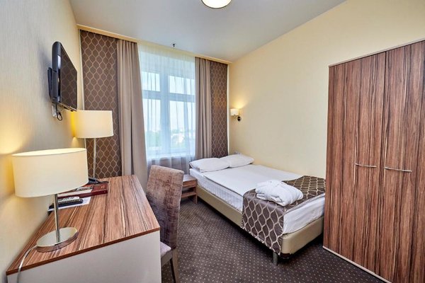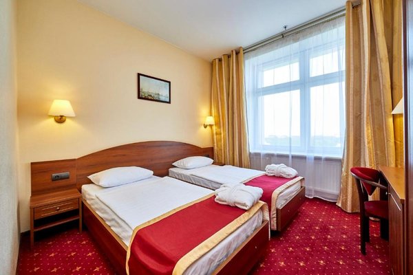 Поездом до ж/д вокзала Балтийский, далее на метро до станции «Технологический институт-2», далее на метро до станции «Парк Победы», далее пройти пешком 670 м до отеля.