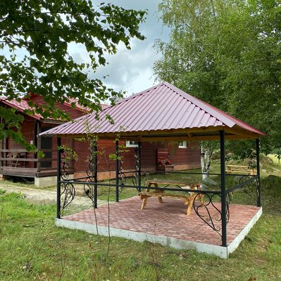 Возле каждого коттеджа расположена индивидуальная мангальная зона с уличной мебелью, есть три крытые беседки и отдельный застекленный домик для барбекю. Мангал, шампура и розжиг предоставляются бесплатно. Угли и решетку для гриля можно приобрести за дополнительную плату.